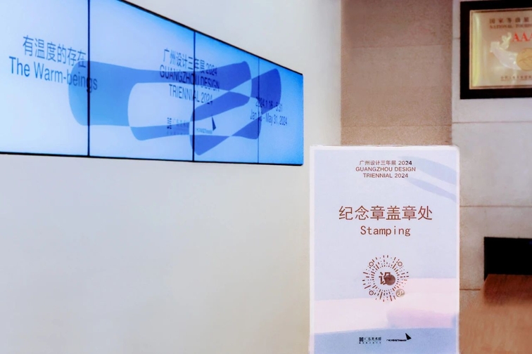 在广东美术馆2楼,本次展览主视觉设计团队设置了一个视觉体验装置。观众可以通过使用手机屏幕,在手指滑动之间、虚拟现实之中、触觉产生之时,感受与体验设计的温度,获取一张独特的迷你“海报”。为了更好的互动体验,装置将于每日11:30 - 14:30进行设备维护。
