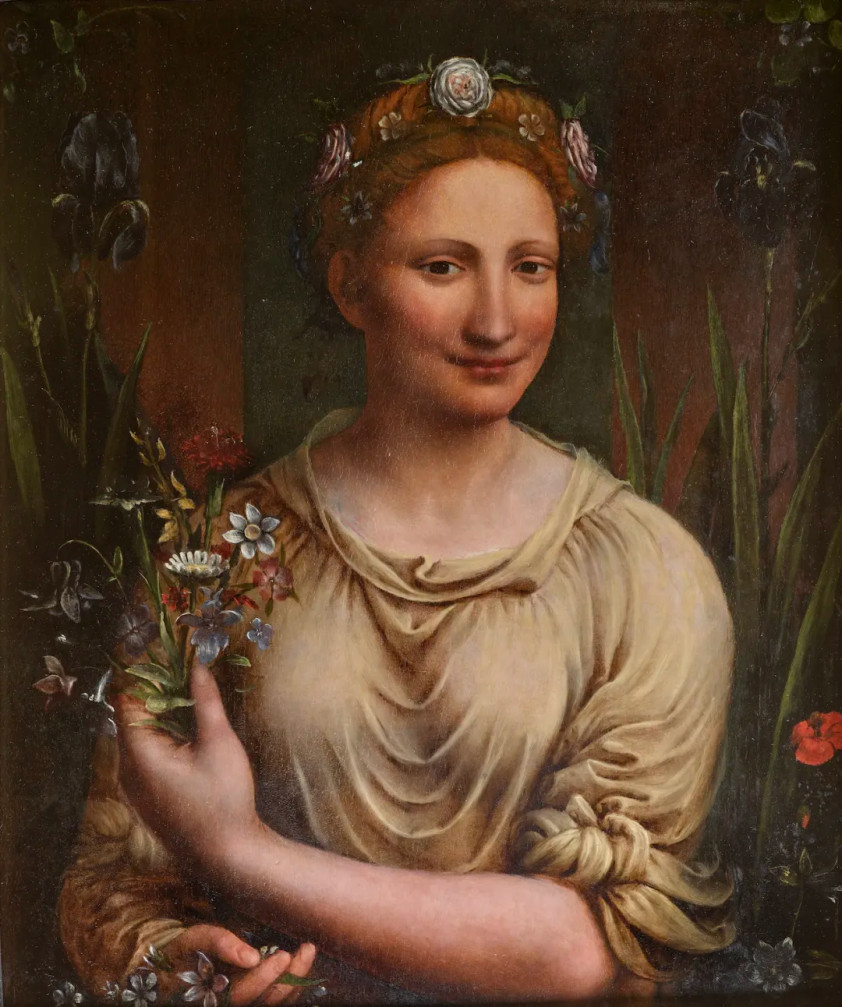 本次展出伯纳迪诺·路易尼的《花神福罗拉》是一幅16世纪的木板油画,充分体现了文艺复兴时期对人类美和自然的追求。艺术家通过细腻的笔触和真实的表现手法,描绘了古罗马的花神福罗拉(希腊神话中她又被称为克劳瑞斯)。伯纳迪诺·路易尼是文艺复兴时期达•芬奇圈子里的意大利北部画家,据说和达·芬奇有过合作,因此很多他的画被认为是达·芬奇的作品,尤其以拥有细长眼睛的优雅女性形象而闻名。