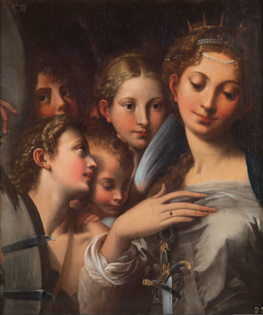 在意大利文艺复兴时期绘画达到了完美顶峰后,样式主义(又称矫饰主义、风格主义)开启了一个极富想象力的艺术时期。样式主义是大约16世纪出现的一种介于文艺复兴和巴洛克艺术之间给他短暂过渡风格。它突破了古典主义的规范和比例,通过夸张、扭曲和复杂的表现手法来传达艺术家的个人情感和观点。其艺术作品常展现拉长的人体比例、不平衡的姿势、丰富夸张的表情,以及缺乏清晰的透视等特点,色彩也更加丰富艳丽,常带有一些怪异的光影效果。