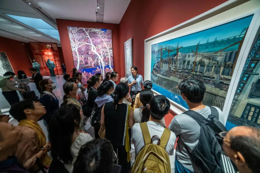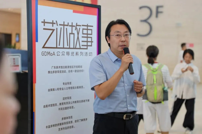 近日,广东美术馆举办“一起看展览·专家导览”活动,邀请“新时代赋”展览策展人于洋亲临现场,为观众讲述新时代艺术家们进行艺术创作的理念与实践,带领观众漫游展览,共同走进新时代,感受新生活。