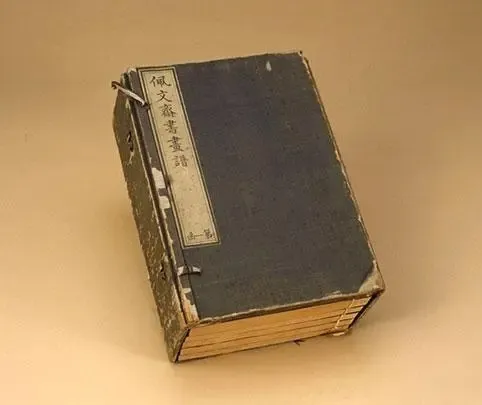 广东美术馆特藏《佩文斋书画谱》,清王原祁、孙岳颁、宋骏业等编纂,上海同文馆印,于1920年出版。版框16.4cm×11.7cm,半页17行,行31字,白口,单鱼尾,四周双栏,共42册。此次修复为其中一册《佩文斋书画谱(第二十六册):书画跋、历代帝王书画跋、历代名人书跋》。