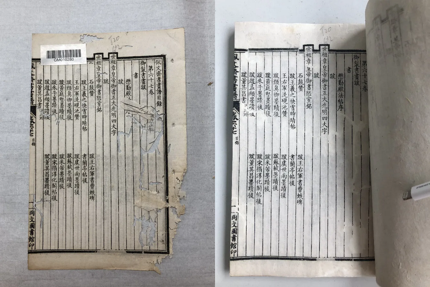 查看《佩文斋书画谱》状况,亟需修复的记录入表