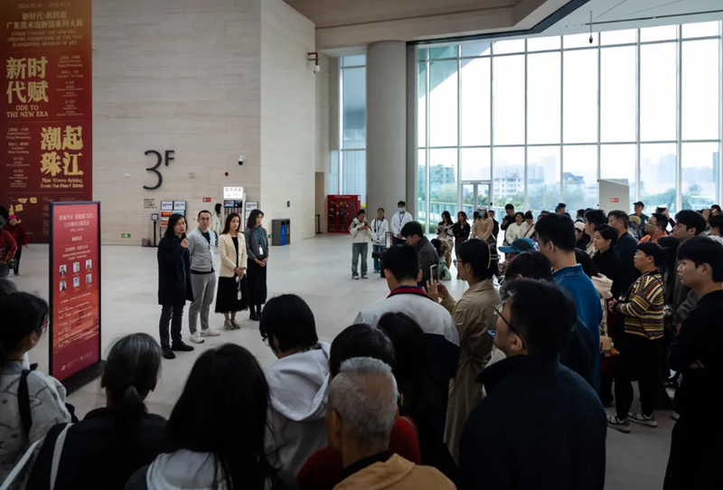 广东美术馆的专业馆员则在新馆接力,给观众带来持续一天的导览活动。他们带着观众从充满新年气息的民间艺术看到精彩纷呈的现当代艺术,展现了广东美术馆的丰富馆藏和展览理念,陪伴大家度过美好的元旦假期。