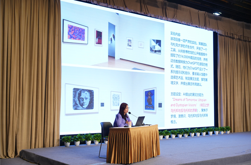 在主题演讲中,马琳阐述:传统策展以策展人学术经验与审美判断为核心,而人工智能(Artificial Intelligence,简称AI)正推动其向数据驱动转型。AI可深度应用于藏品关联挖掘、主题预测、参观路径设计等环节,通过图像识别、语义分析等技术构建可视化关系图谱,突破传统线性叙事与单一分类局限,开辟跨媒介、跨文化策展路径。
