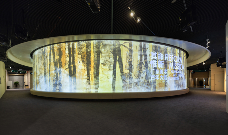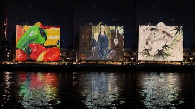 在展馆内,岭南画派作品被生成式人工智能技术重新组织为具有时间性与视觉经验性的动态图像,这种处理方式让光影承担了叙事功能,而不仅是视觉刺激,作品被放入“百年历史—城市记忆—当代技术”的连续结构中,展览主题“其命惟新”被转化为一种可感知的空间经验。在这个意义上,光影成为一种策展语言,而不是简单的技术加成。