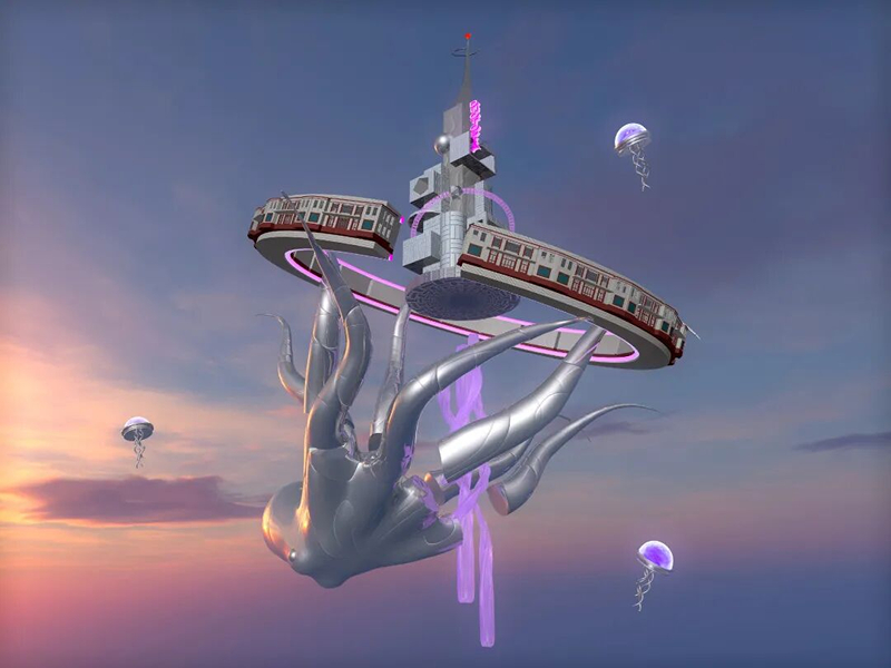 《多托邦》是曹斐自2007年在“第二人生”建立虚拟城市《人民城寨》(RMB City, 2007-2011)之后,于元宇宙“元邦”平台首次创建的以社群建筑为形态的作品。她尝试将多样性和自然主义、历史记忆融入到虚拟城市的规划当中,为探究中国虚拟社群文化空间的建构提供新的观察和研究场域。