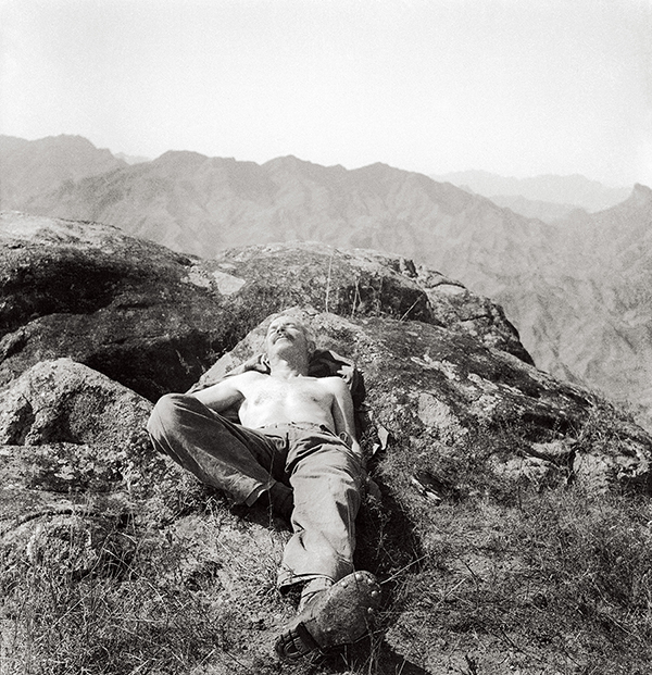 照片中这个躺倒在岩石上晒日光浴的人,脸上带着轻松惬意的表情,似乎只是一个在游玩中停下来享受美好阳光的普通人。然而,摄影师特意将他的鞋底呈现在了我们的眼前:鞋底那5颗整齐的铆钉,让观者意识到这个人一定有故事。