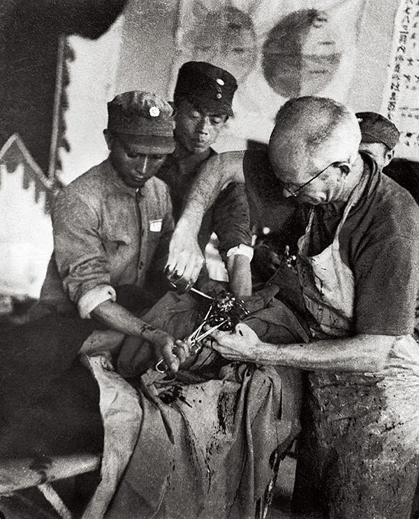 1937年抗战爆发后,沙飞毅然奔赴华北前线,成为了人民军队的第一个专业新闻摄影记者。他是这张照片的作者。1938年,加拿大人白求恩为了帮助中国的反侵略战争,不远万里来到中国,向着危险逆行,成为了一名战地医生。他是这张作品中的主角。