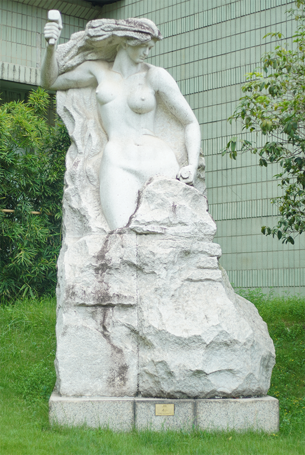 潘鹤:你看这个人上半身已经雕刻完成,但是下半身还在巨石中间,她没有办法自己雕刻完成,需要社会来帮助。就是这个意思,社会是推动个人最终完善的不可缺少的外因,一个好的社会环境非常重要。