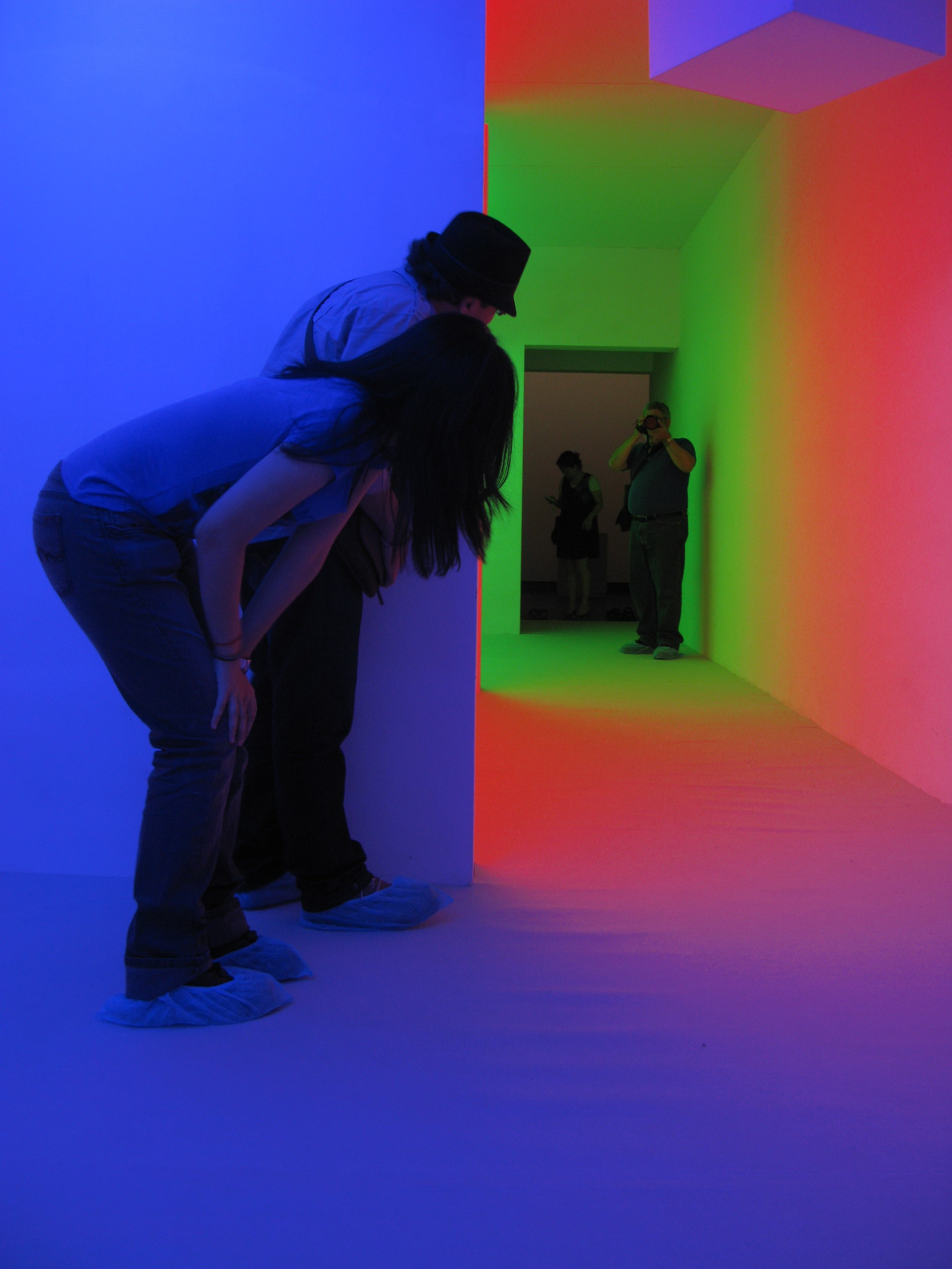 “渗透的色彩”1965年设计于巴黎,当时题名为“创造性的迷宫”。 这件作品使观众置身于一个独特的环境,帮助观众发现色彩在时间和空间中的变化过程,使观众在没有任何形态参照的情况下意识到色彩的实体存在性,从而改变对色彩的认知。
