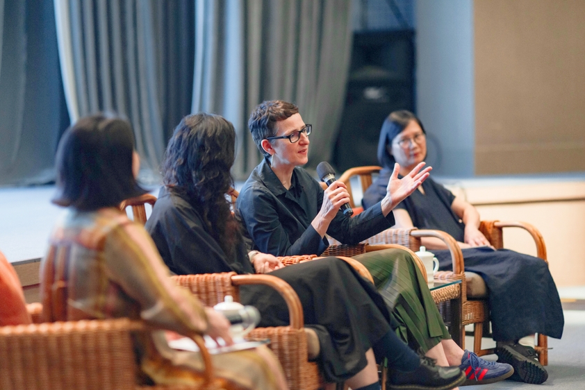 在两场讲座过后,由王乃一主持,张黎、雅娜·朔尔策和郦亭亭进行了学术对谈。她们对当代设计的善意与温度、如何评判设计中的温度和关怀等主题进行深入讨论。张黎认为善意是多元参与和共建的结果,与关系属性相关,而设计的温度应考虑个人感受和情景需求。雅娜·朔尔策强调善意在设计中的重要性,认为它应导向关键行为并对人与物之间的关系产生积极影响。郦亭亭从广三展的策展经验出发,探讨了从不同角度理解善意和正义,以及物质文明对精神性退化的影响。