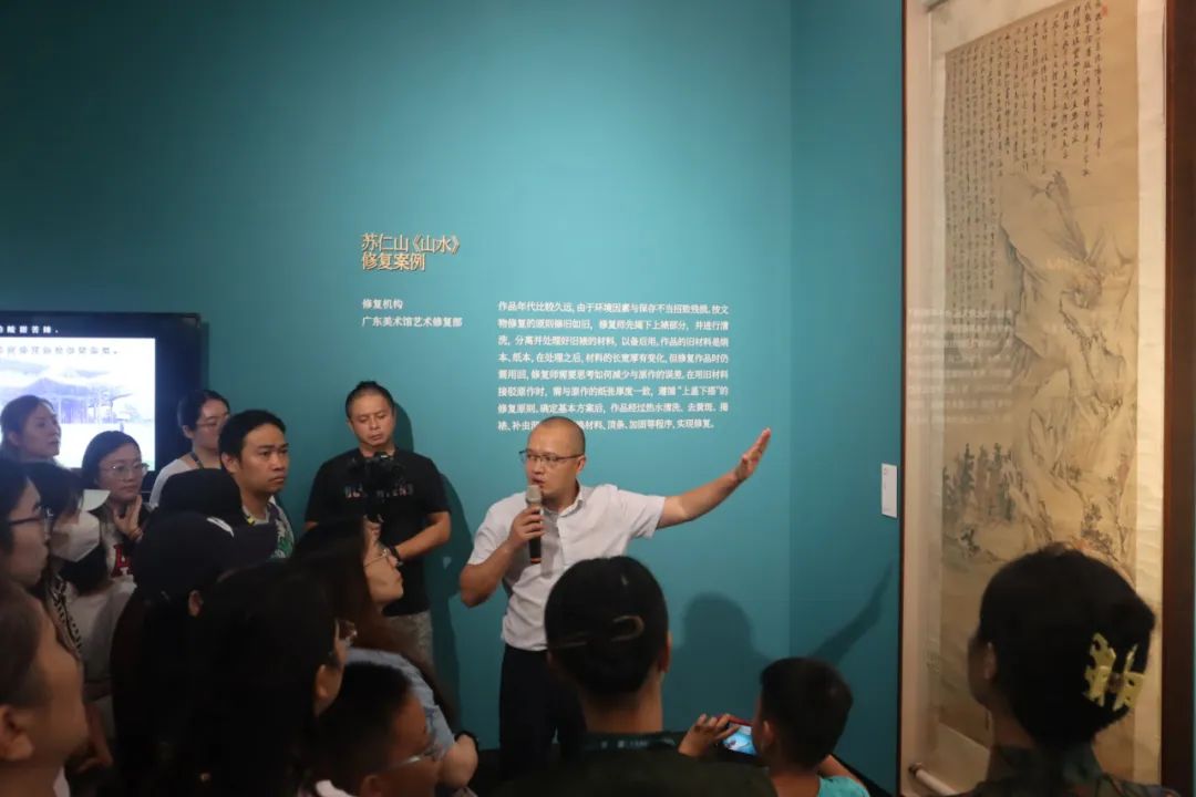 在观众眼中,艺术品修复师是这样一个角色:身居幕后,从事着科学与艺术结合的神秘工作。趁此次展览之机会,广东美术馆邀请来自油画、古籍、器物等领域的11位修复师,为公众开展了五场关于文物保护与修复的专家导览活动。“与修复师一起看展览”系列活动成为了连接过去与现在、艺术与技术的独特体验,激发了人们对艺术品保护和修复话题的关注和理解,唤醒了人们共同守护经典艺术作品的责任与热情。