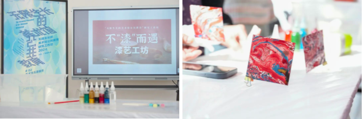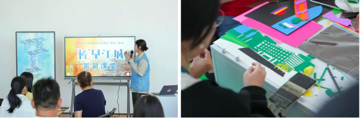 在工作坊期间,湖北美术馆志愿者团队带来了他们的文化志愿服务品牌项目“不‘漆’而遇——漆艺工坊”和“‘桥’见江城——美育课堂”,面向美术馆志愿者管理骨干、公共教育专员、志愿者成员等进行了教学交流示范。作为国家重点美术馆,广东美术馆和湖北美术馆都结合各自定位和馆藏资源开拓了诸多经典的公共教育项目,在示范课后,两馆公共教育团队就志愿服务工作开展、公共教育项目策划、教育互动物料开发等内容进行了交流探讨。