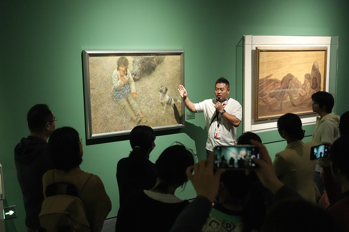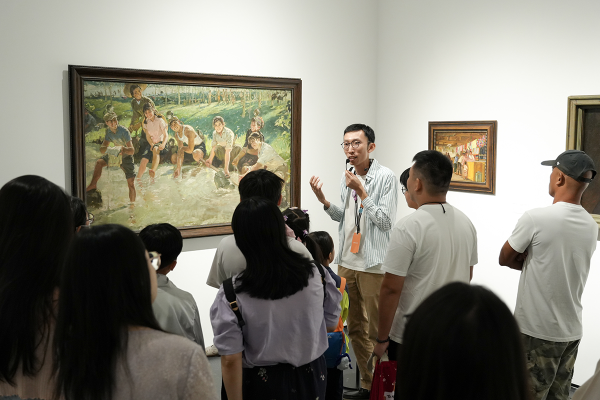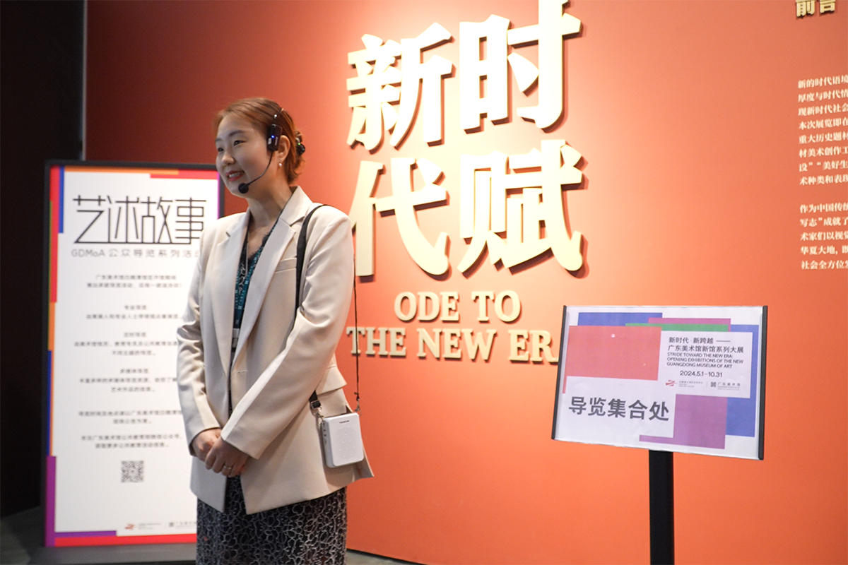 在假期里,馆员、公共教育专员、志愿者们在国庆期间为观众提供了20场定时导览,覆盖广东美术馆两个馆区的多个展览。教育员、志愿者深入浅出、生动有趣的导览,得到观众的热情回应。