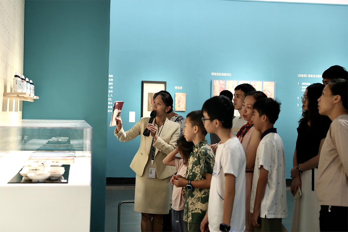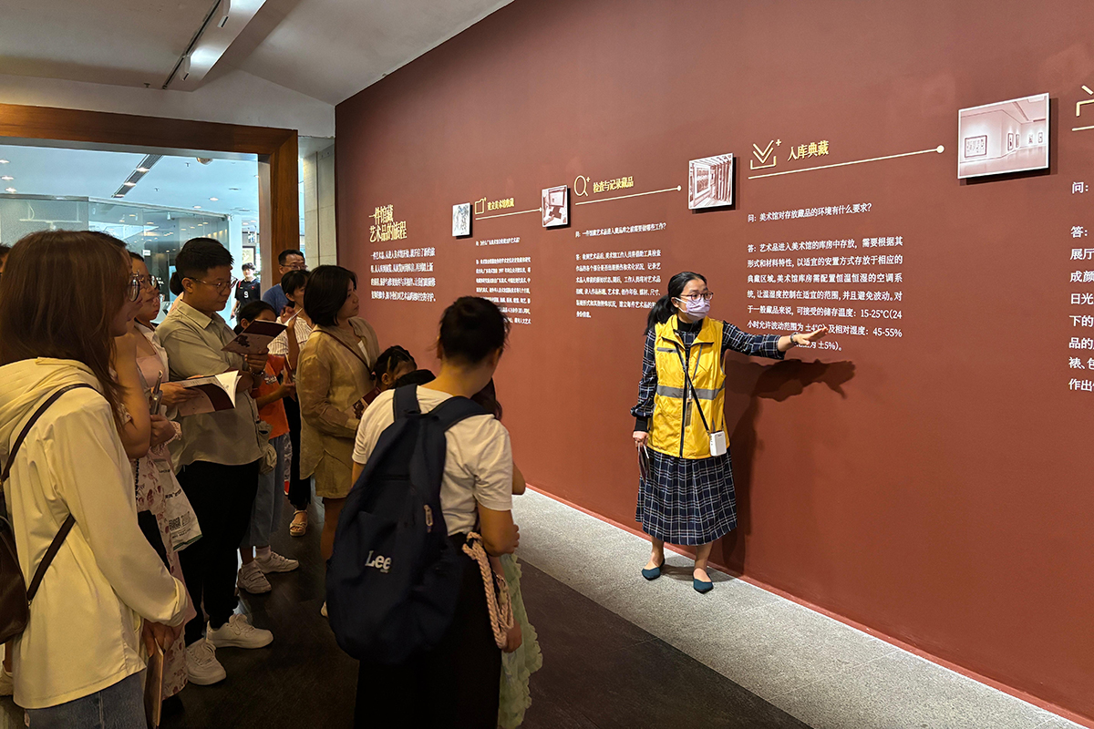 国庆期间,结合“跨越时空的守护——艺术品保护与修复专题展”,广东美术馆在二沙岛本馆区推出“微寻宝:寻找修复的痕迹”活动,吸引了现场观众踊跃参与。观众领取寻宝卡后,根据卡片的图像线索,走进展厅仔细观看展览,寻找和发现展览的细节和信息,找到对应的修复案例后,在教育互动区完成答题,收集修复工具元素盖章纪念,在游戏中感悟艺术品保护与修复理念。