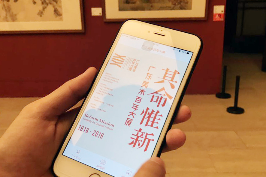 “其命惟新——广东美术百年大展”是广东近百年来美术精品佳作的一次集结,是对广东近百年来美术较为系统、全面的总结和展现,展览于2017年7月8日至23日在中国美术馆举办,8月4日至9月5日在广东美术馆举办。在展览期间,为了让公众能充分了解广东美术百年历程,随时随地观看展览、浏览500多件展出作品,增强到场观众观看体验,我们策划了将艺术与科技结合的导览服务,制作了“广东美术百年大展AR互动软件”。