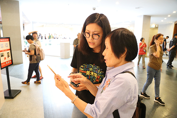我们为展览现场展出的500多件作品制作了微信导览。观众使用AR互动软件或微信的扫一扫功能,便可进入艺术家个人主页,浏览艺术家介绍、重要作品等内容。在展览期间,我们在微信服务号和订阅号上定期推送相关内容,向公众普及经典艺术知识。