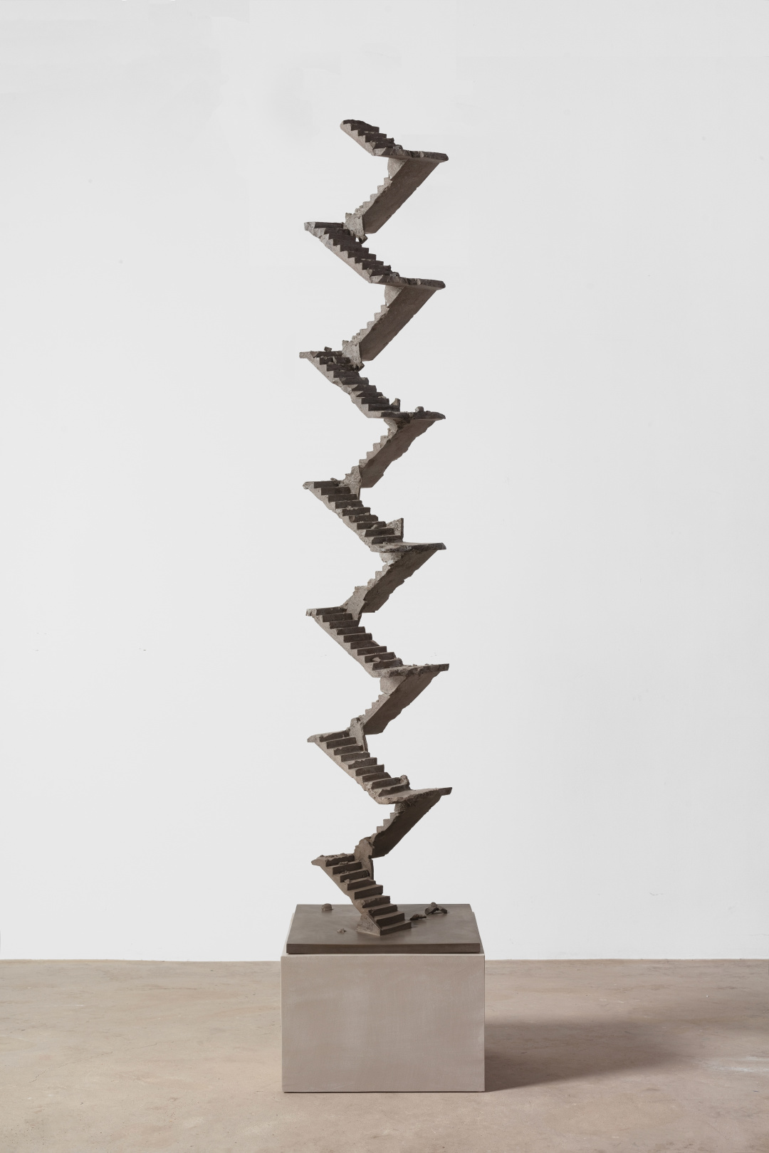 《单元》揭开楼梯与人们现实生活之间的关系。一栋单元的楼梯是一个中央神经连接各户,起到的是“控制”的作用。这种“无形”的控制常常让人忽视。残缺的楼梯暴露在外面,脱离其楼体内部空间,似乎经过了外力的瓦解,剩下了仅有的存在感。把住宅楼梯多给人以身体行走的感知体验带到到另一角度感受,让观者产生一种心理的矛盾与视觉的不合时宜。