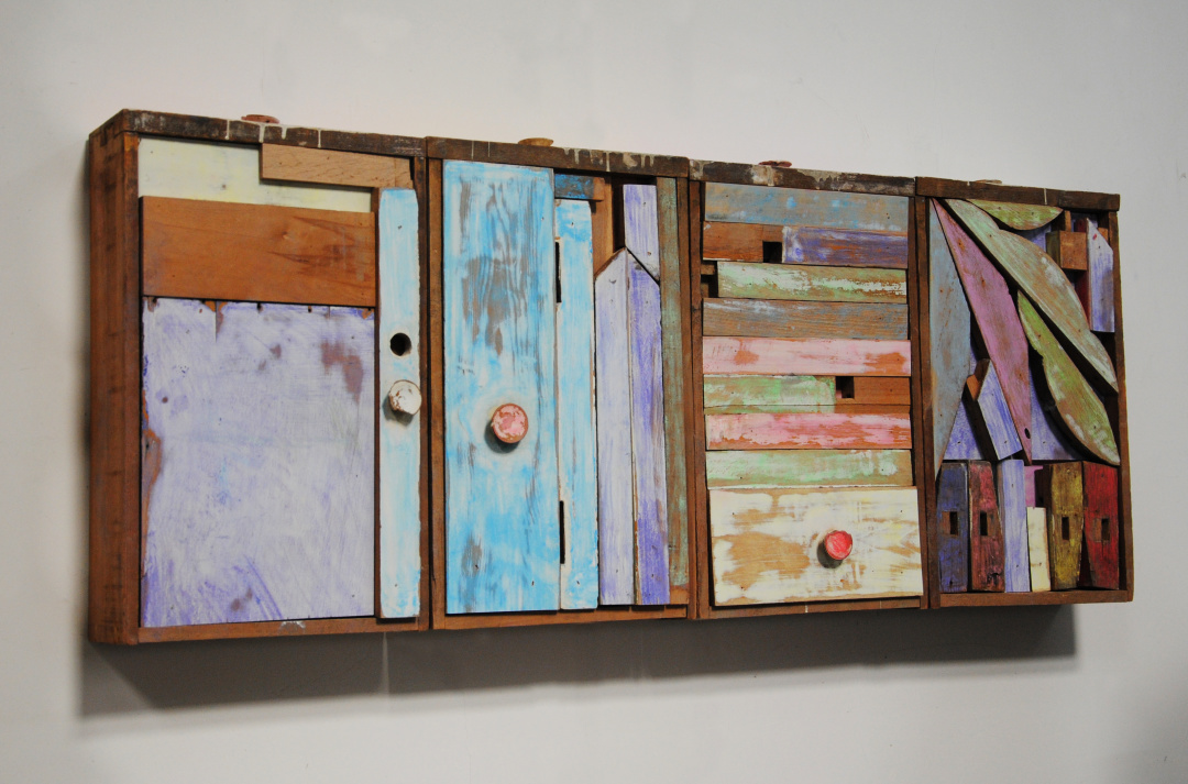 物体的存在形式与空间形态互为表里。我把原作品《布新》中的桌子进行拆解,创作了《把桌子装进它的抽屉里2》。抽屉原本是一个收纳物件的空间载体,拆解后的桌子被其自身的抽屉所收纳。作品既是对原物件最大的空间压缩,也是对物性与空间的转换。“开”与“合”是语言形式,也是这件雕塑物本身的存在方式。