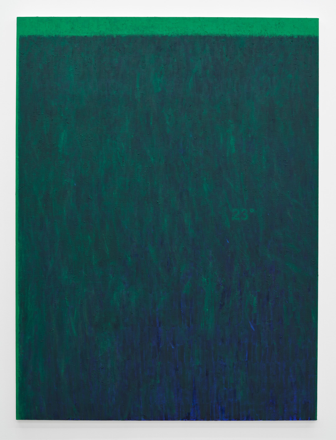 周思维以生活中各种碎片化的图像、文字和感受作为创作的起点,用绘画这种几乎原始的方式去描绘虚拟而实在的日常。通过这一主题下的系列作品,周思维想要讲述一种速度感,一种可以把转瞬即逝的感知化为图形和色彩的方式。想象着自己在旋转的新“自然”里,背着“印象派”时代流行的画具,在任何“景色”前都可以随时停留,支起画布去“写生”。《23°雨》即是记录那一天出现在手机屏幕上23度雨潮湿又温暖的味道。