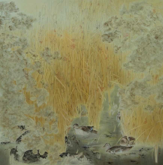 刘煜 《秋塘戏水图》 中国画 184×184cm 2014年