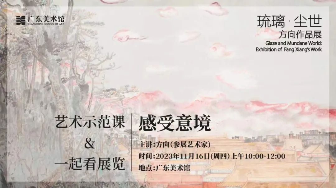 在展览期间,广东美术馆邀请艺术家方向先生与观众一起看展览并开展艺术示范课,展示当代水墨创作过程,引导观众领悟“琉璃·尘世”意象,感受当代水墨的独特魅力。