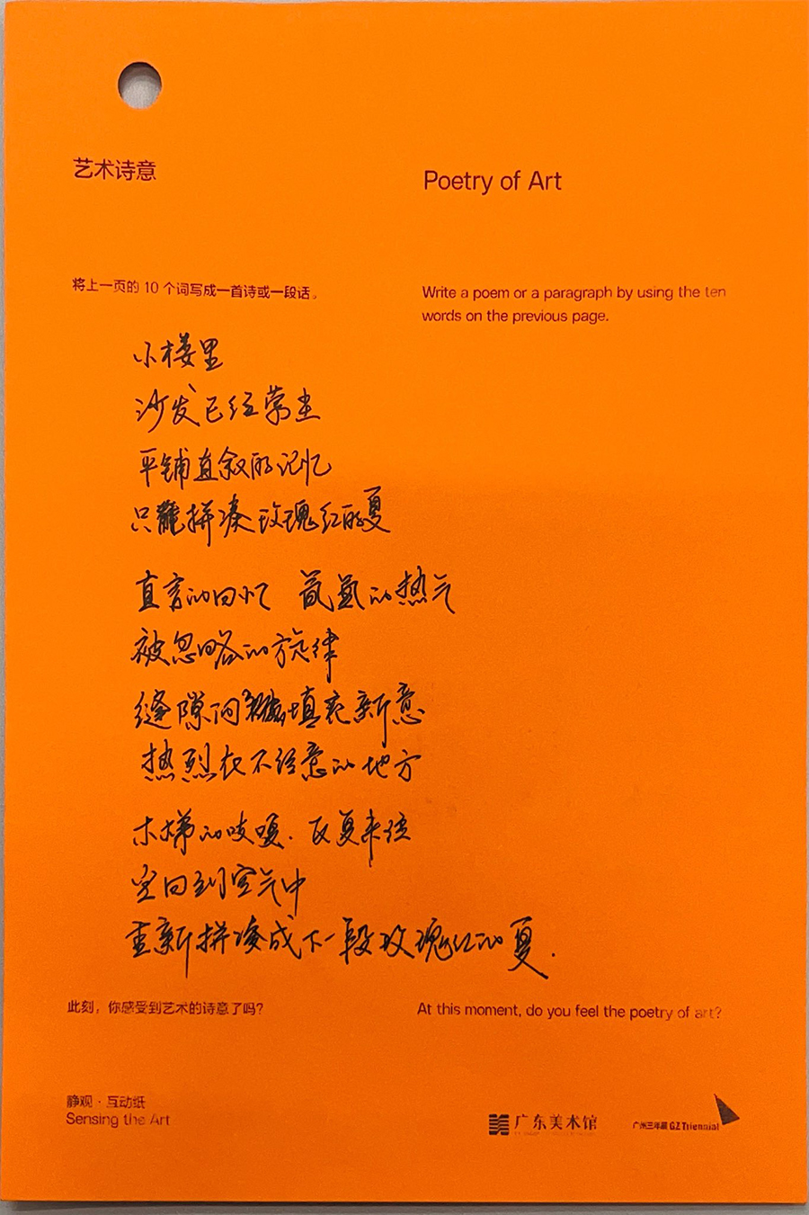 在活动中,许多观众为自己喜爱的作品写下真诚的留言;还有观众在展览中产生了强烈共鸣,通过“艺术诗意”互动游戏,创作出情感丰富、视角独特的短诗或散文。