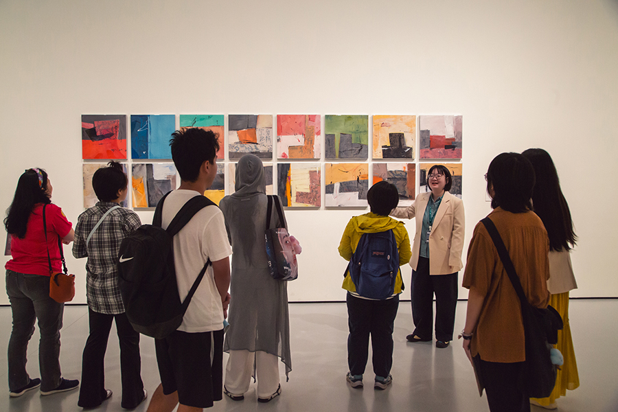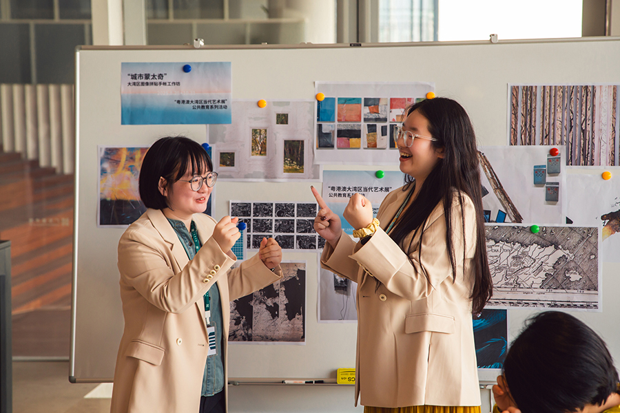 “粤港澳大湾区当代艺术展”期间,公共教育团队推出多场公众导览活动,通过线上资源与线下导览相结合的方式,为观众构建了多维度的参观体验。